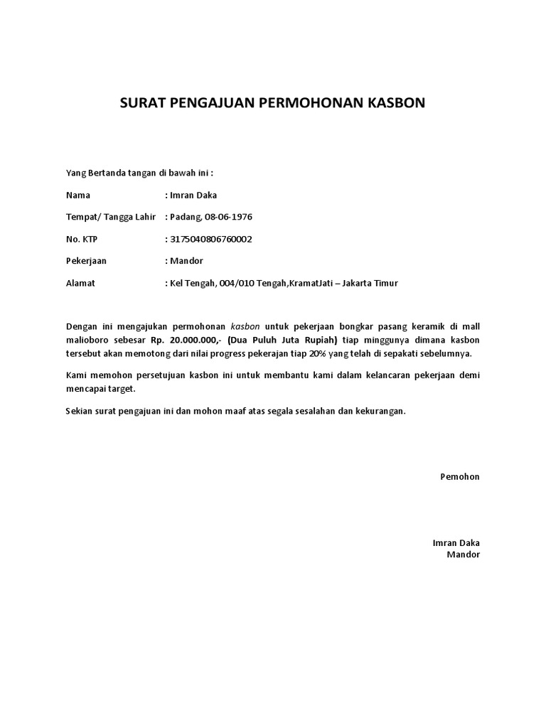 Surat Pengajuan Permohonan Kasbon Pdf